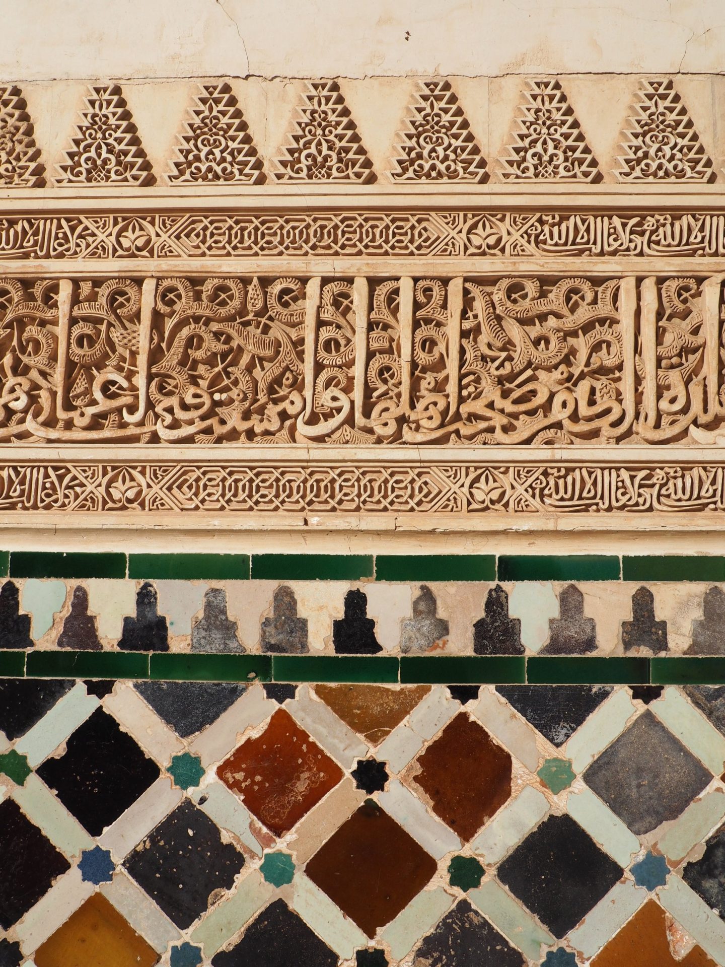 Carefully carved detail at Palacios Nazaríes, at Sala de los Reyes ↓