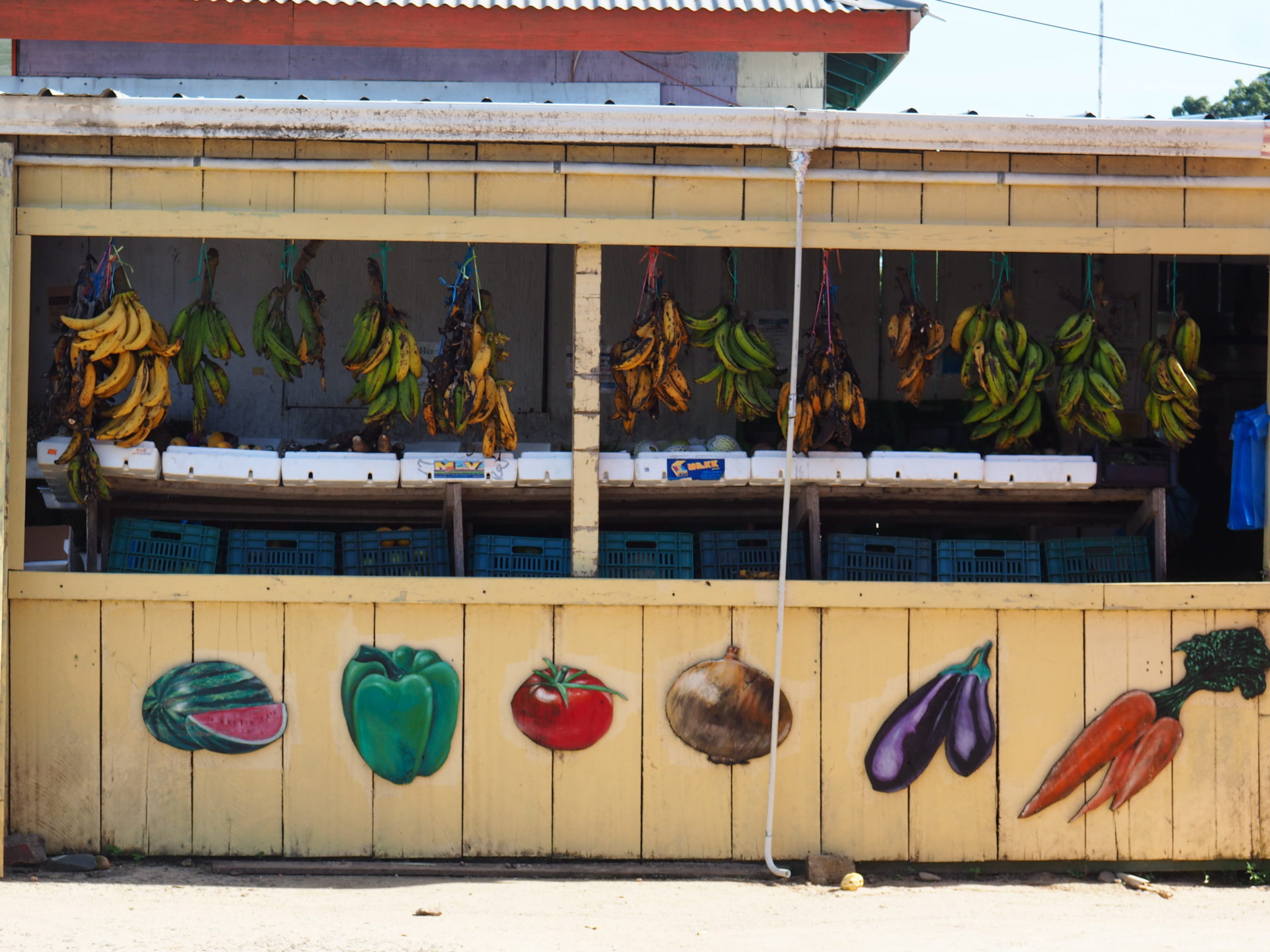 Most people were walking barefoot on the pier, there was a guy painting a new mural in the shade of a palm tree, flowers and shells were all around and the locals were bringing in the daily catch in the afternoon.
