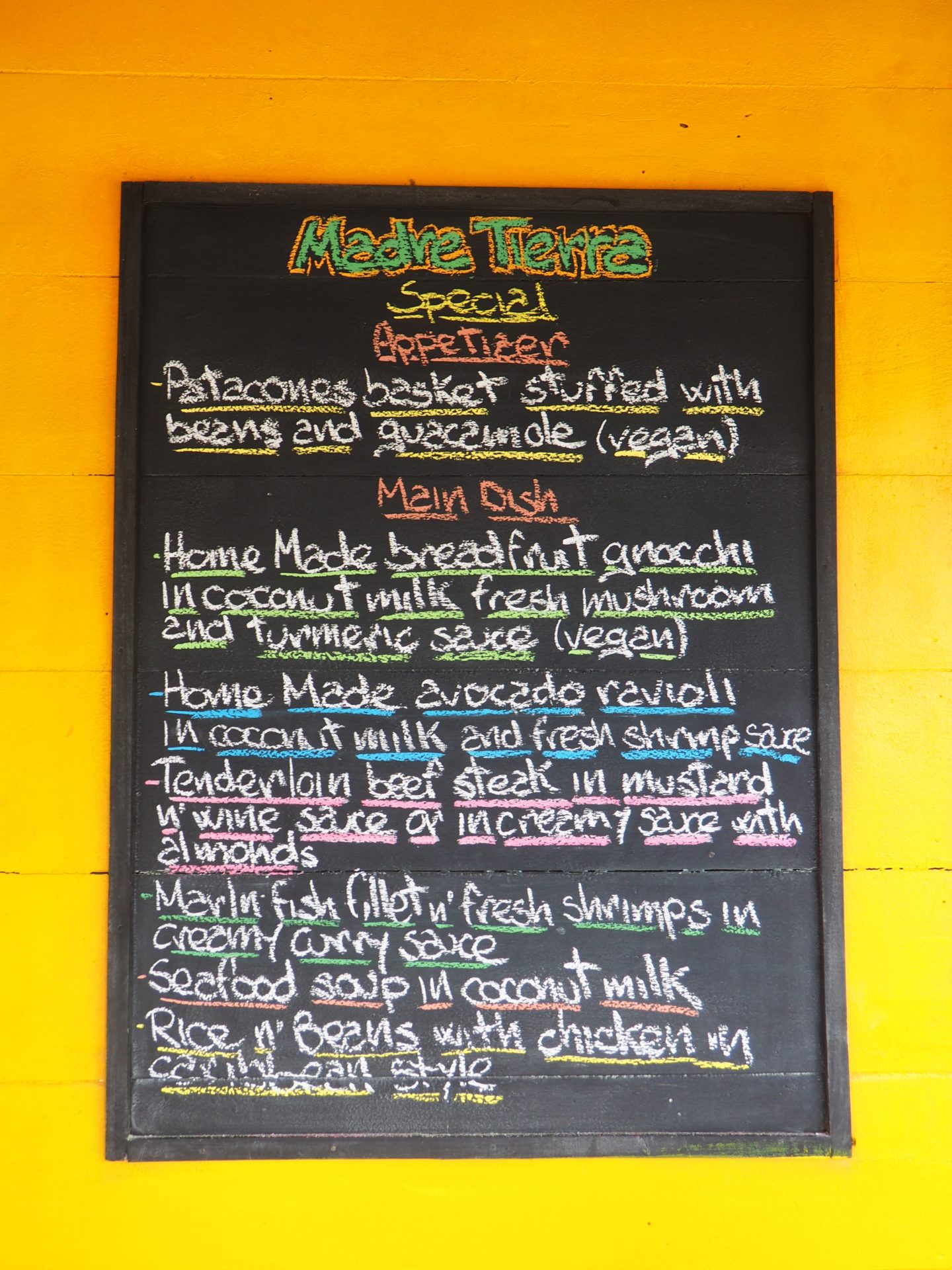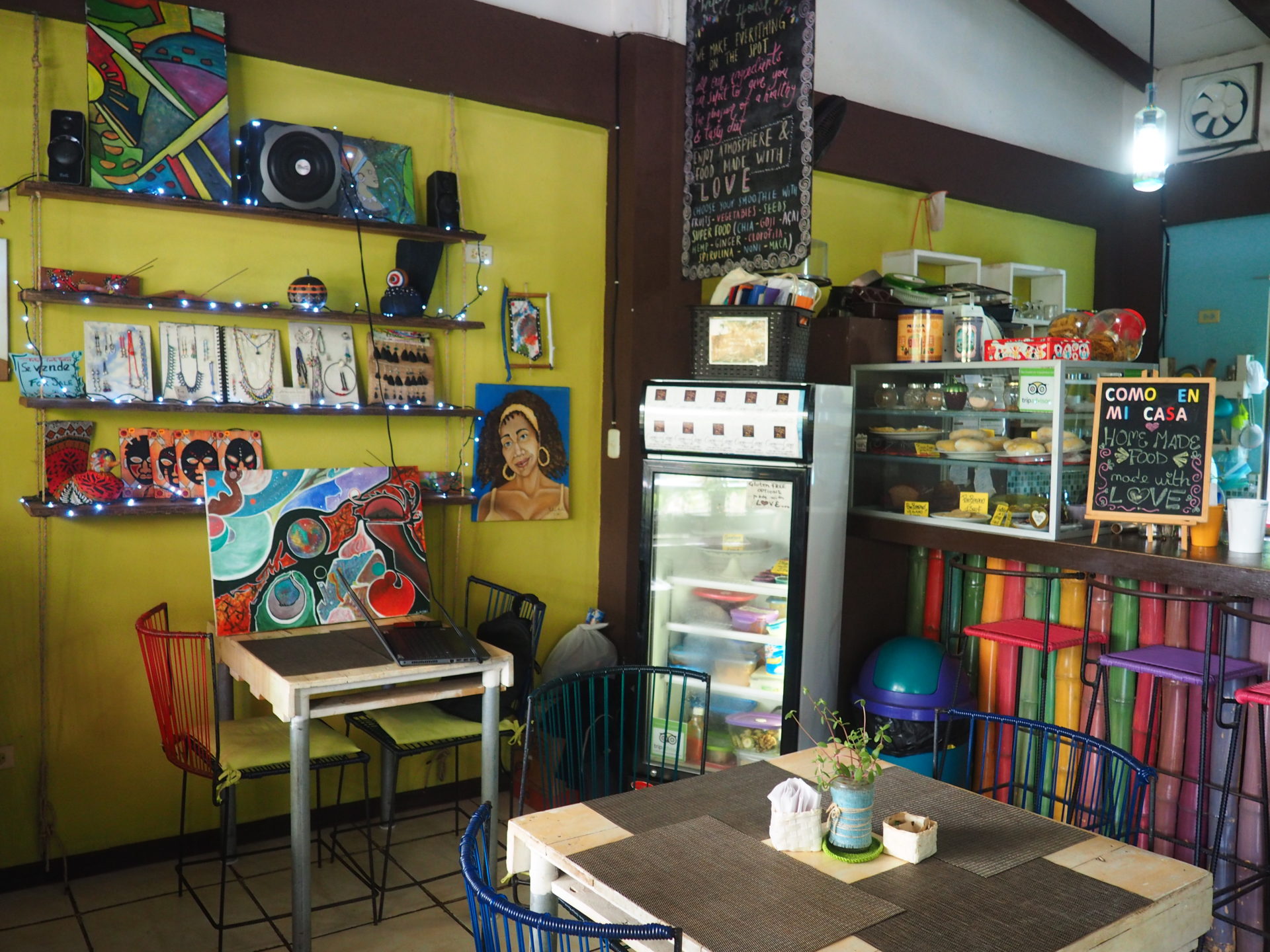 Charming little restaurant right in the middle of town with some nice views from the upstairs open dining area. The owner is a magician when it comes to the fresh bebidas and puts a lot of effort in each and every drink. You’ll get such a big glass, you won’t need to order another one. Dishes are creative and tasty too, though you may have to wait a little while. All for a meal with a true Caribbean feel.