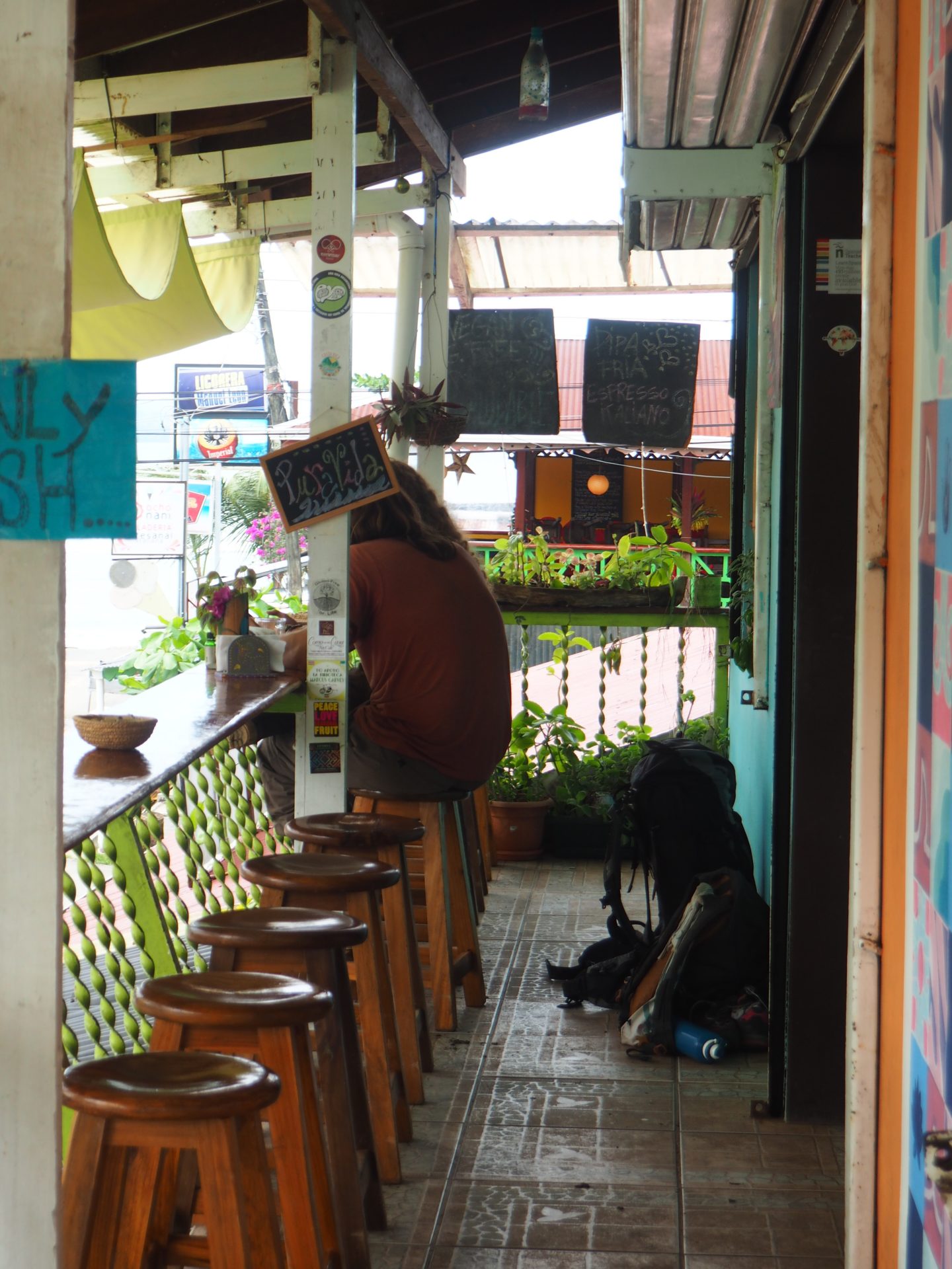 If you look at the terrace from the outside, you’d rather think you’re in Ibiza or Goa instead of Costa Rica. Koki is the best place in town for a sunset drinks, enjoying the street scene and watching people. Located on the main street of Puerto Viejo, the colourful rocking chairs are comfortable set up towards the street so that you can watch everything and everyone walking by.