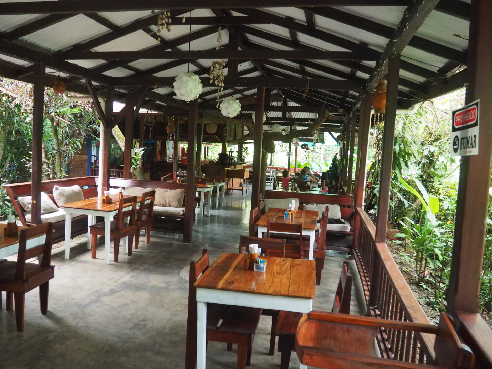 Luckily not only the cocktails and appetizers are yummy, but the dishes on the menu are quite okay too. Perhaps you even see the ‘house sloth’. The tree he lives in stands in the middle of the restaurant and he often comes down when there’s a bit of rain.