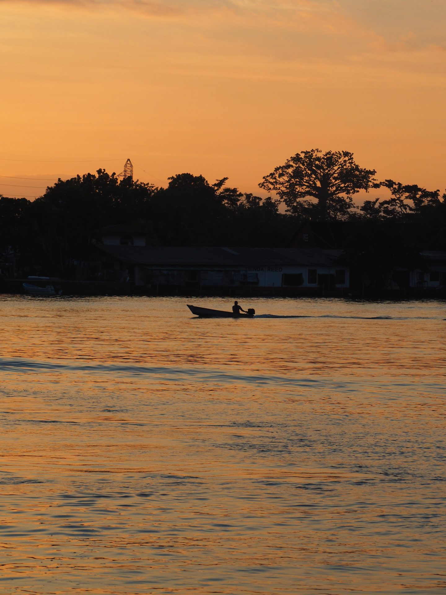 The port of Río Dulce at sunset