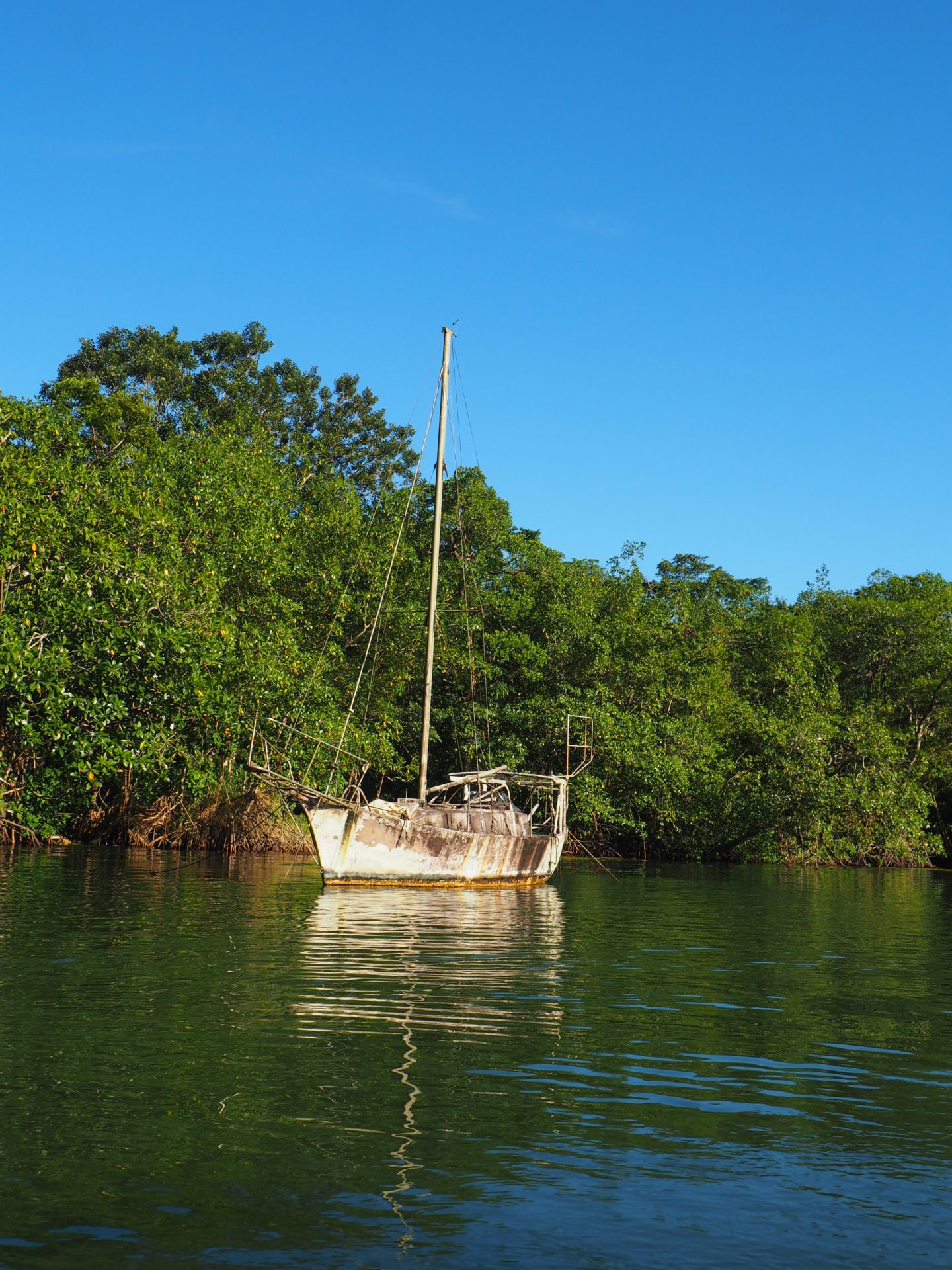 Once you’ve passed the Río Dulce bridge you’ll very soon be in the wild. And that is quite cool, since the contrast with the hustle and bustle of the ugly and polluted city of Río Dulce couldn’t be bigger.