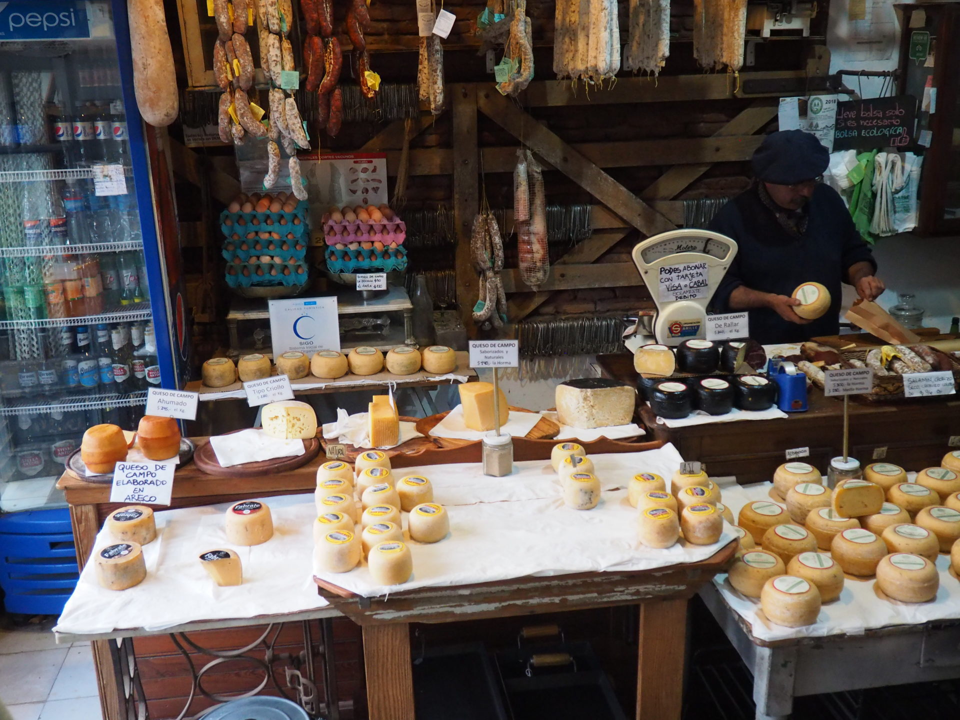 Buying cheese, limoncello and sausages at El Batará
