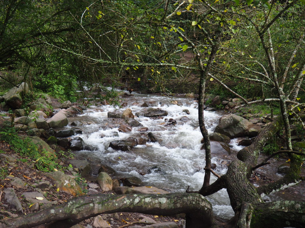 Half a kilometer from the entrance there’s a ‘mirador’, a viewing point, you probably want to hike to first. Do bring your sturdy hiking shoes though, because you ought to cross rivers and many muddy pathways. I came to the quebrada on flip flops (not knowing we’d go to the area up front) and I regret that decision deeply.