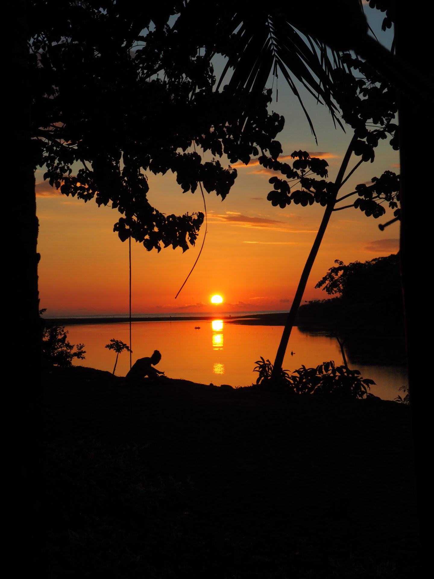 As said we’re facing east in the Caribe in Costa Rica, but Tortuguero does have a decent spot where one is able to overlook the west. It’s located next to where the boats come ashore from the canal. Once it’s 5:30pm, haste towards the water and enjoy the orange, pink and purple skies! ↓