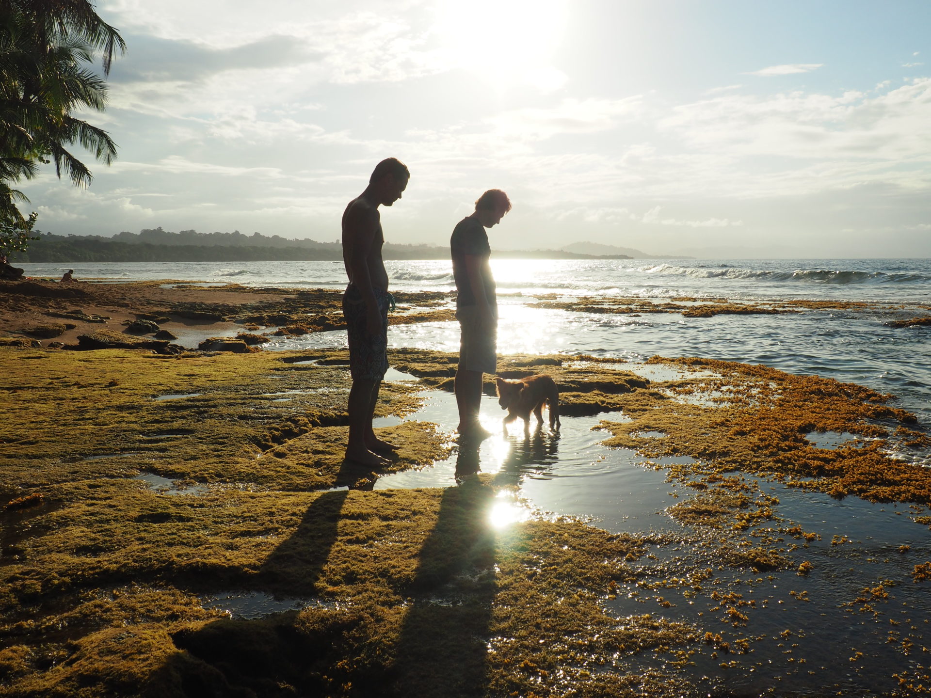 Cool snap right? Maybe a little too early in the day to call this a sunset shot, but I thought this photo of Jori, his brother and our dog Chapo in Manzanillo was quite fun and aligned.