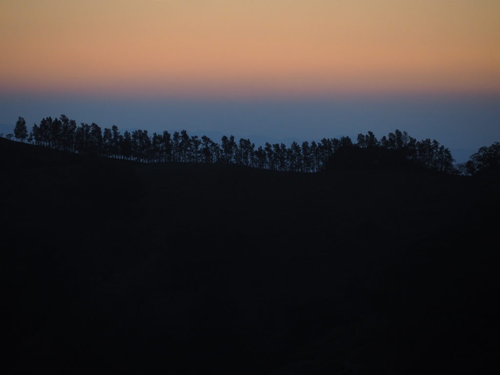 On the west side of the lush town of Monteverde you can enjoy a rather magnificent sunset. ↑ With a bit of luck, you might even see as far as the Pacific ocean. I was mainly focused on these trees on the mountain ridge.