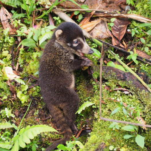Today we only encounter a big frog (the yellow one below; species, anyone?) and a coati with her very cute baby. The coatis dig fiercely into the sidewalks of the road as we drive by, totally ignoring our presence. After the lookout we’re on our way to the nature trails. The Oropendula trail (1,2 km) leads to a swimming area with picnic tables and grills (perfect for a picnic with the family), while the La Parva and Catarata trail (2,5 km) takes you to a couple of waterfalls, the Salto and Palmitas. Those two trails are very easy to hike and have some nice viewing points along the Orosi river. If you want to take a swim, make sure you’re a bit away from the fast-flowing downstream currents.