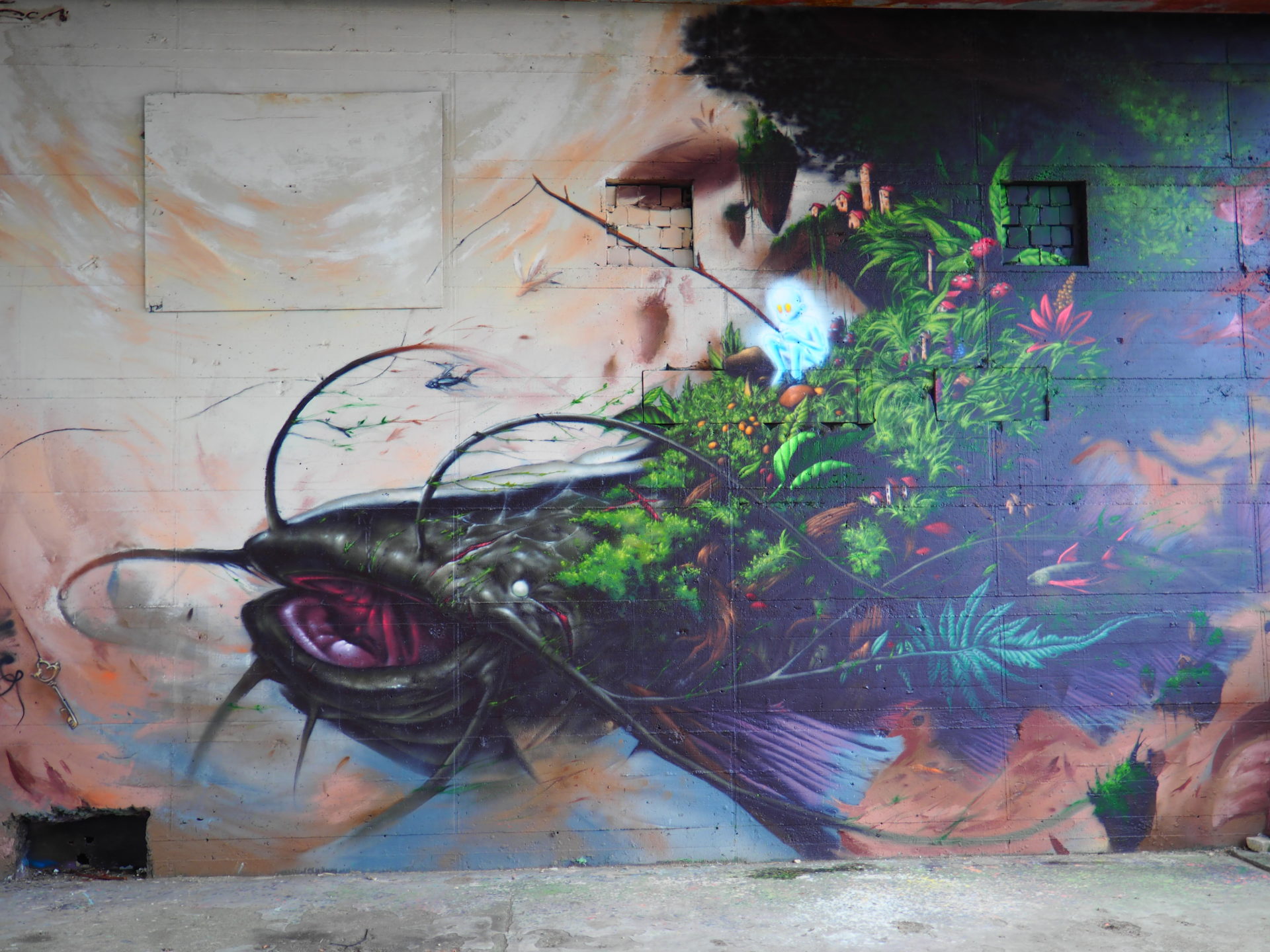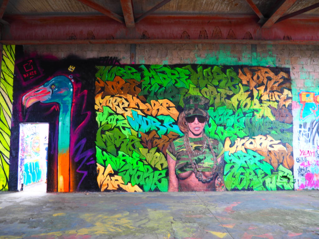 The hilltop area has obviously been neglected for a considerable period of time after it had been abandoned by the Americans, slowly attracting all kinds of (creative) people. Apart from all the stuff beneath it, the site is a huge mess because of all the decay and rubbish thrown out. At the same time it really is a hidden gem of modern art, now that there are lots of graffiti (or street art or graphic) artists spraying in and outside the ugly buildings.
