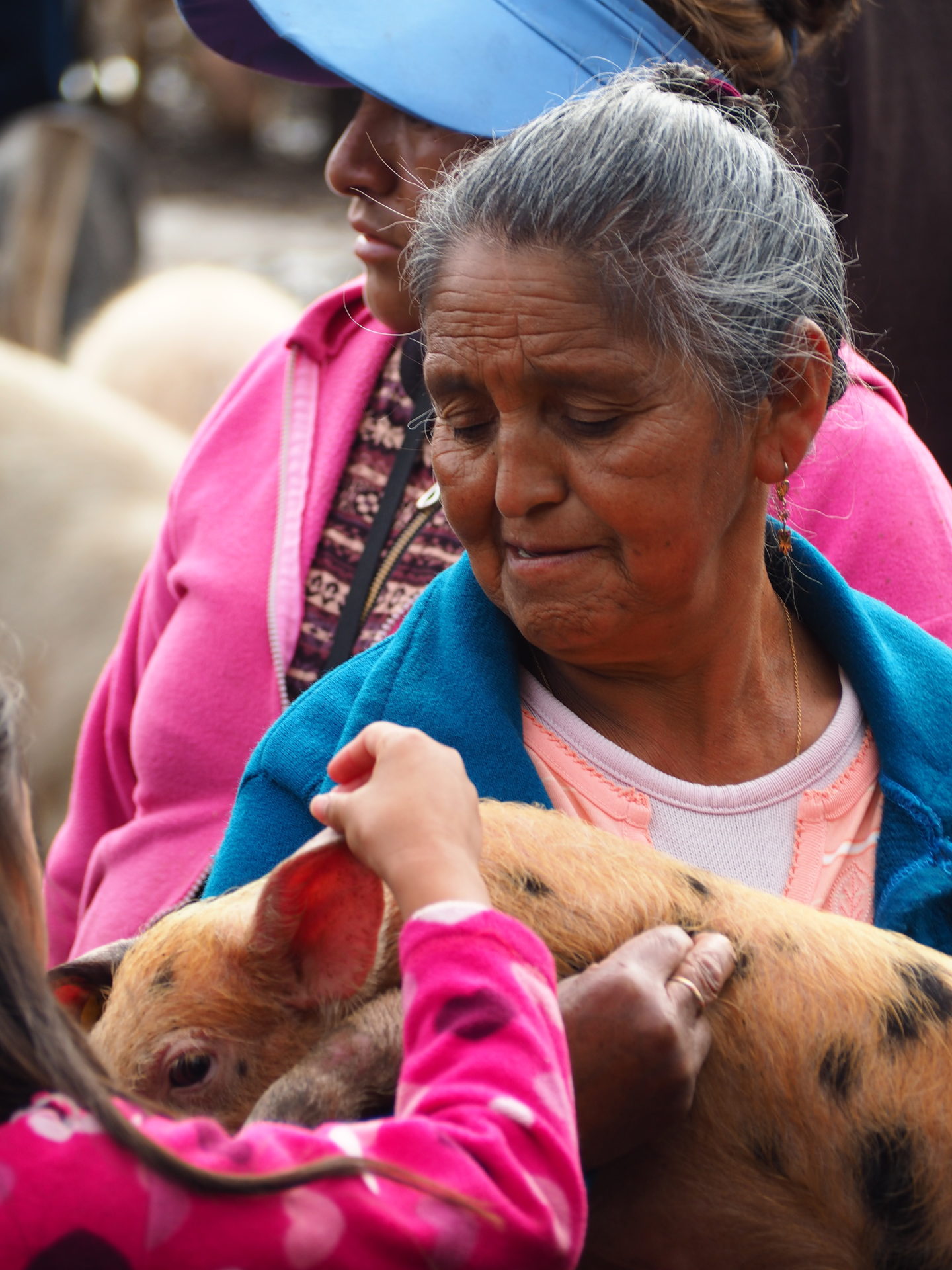 From the very early morning onwards on Saturday the Otovaleños, the indigenous people native to the Andeans mountains of the Imbabura province, come to Otovalo to sell their crafts, cattle and dishes. If you’re planning to attend the day, be sure to start off at the animal market, preferably before 9am. Probably there’s no need for you to buy pigs, sheep, guinea-pigs, cows, horses or puppies, but it sure is quite something to see the Otovaleños bargaining over them in the chaos.
