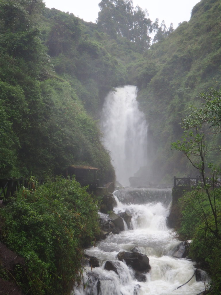 If you’d like to round off your walk, from Parque el Condor it’s another half an hour hike to the waterfall of Otovalo. Spectacularly enough there’s also a path that leads quite close to the splashing water. Walking through the surrounding area feels like you’re situated inside some Bavarian hillside landscape scenery. Once you leave the park, where the waterfall is situated, you’ll walk through the village of Peguche, a small but cute yet touristy like area, where there are a couple of pleasant places to enjoy a drink or eat some Ecuadorian food.
