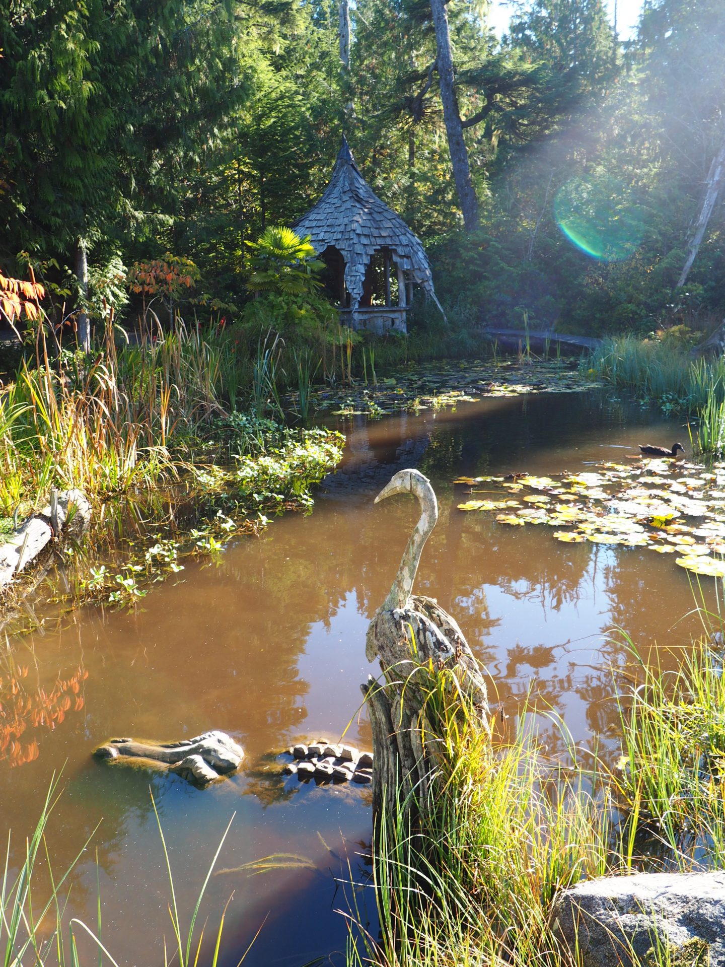 Throughout the first part of the trail you’ll also encounter a couple of art installations, which are cool. On the other side of the forest you’ll find a peaceful lake, full of birds.
