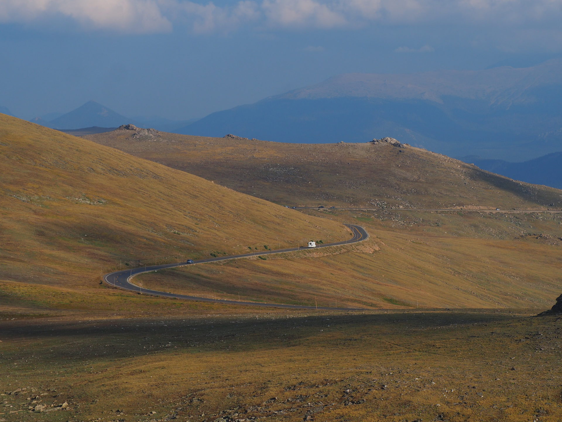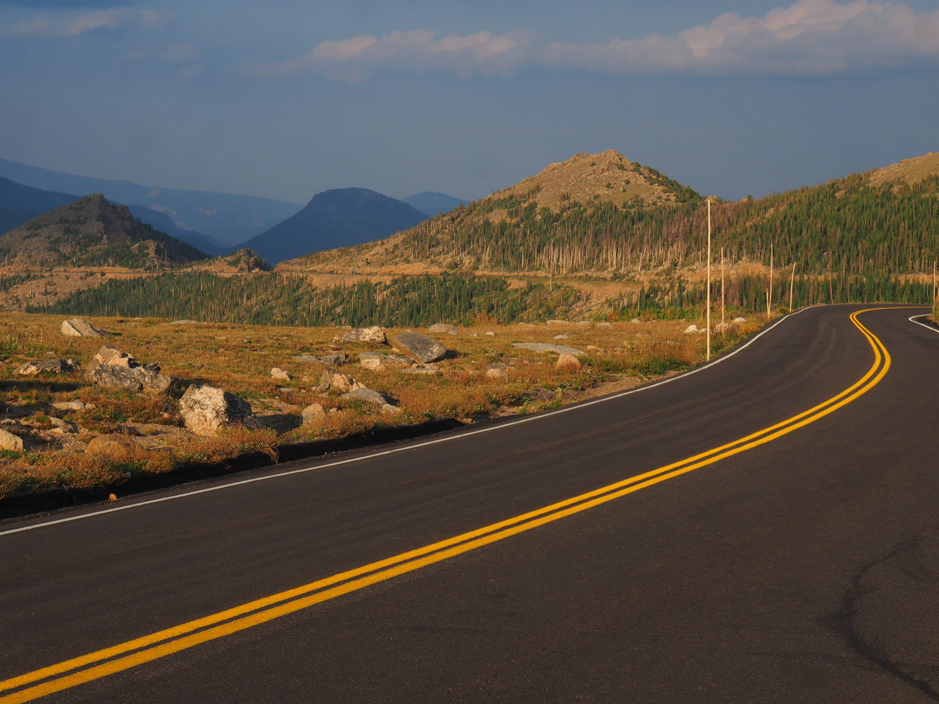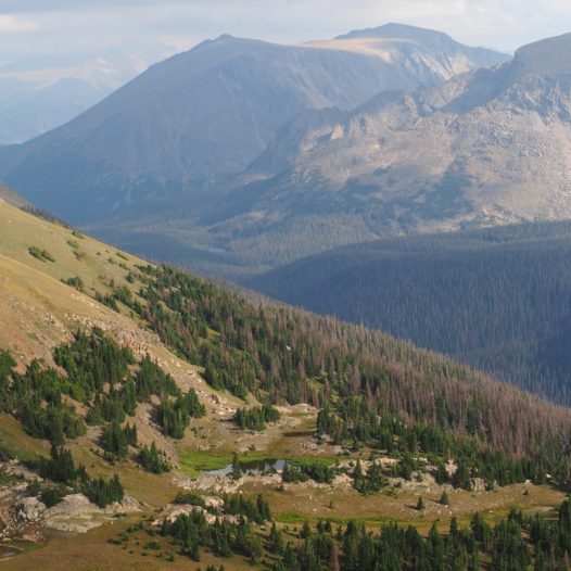 There are a couple of pullouts – of which many are high above the tree line – that give you a splendid panorama of the Rocky Mountain valleys. Interested in what you’d see? Here’s where to go!