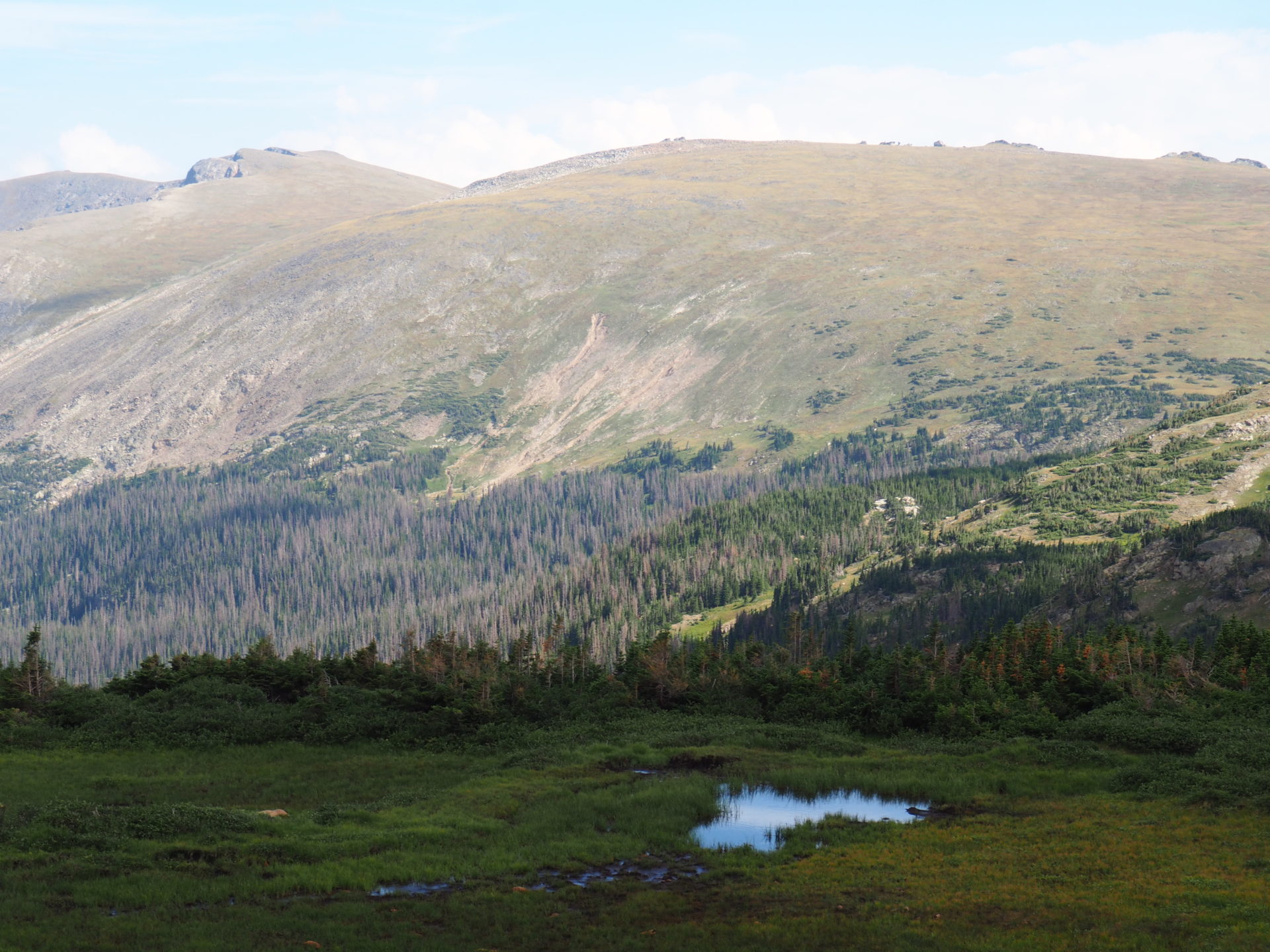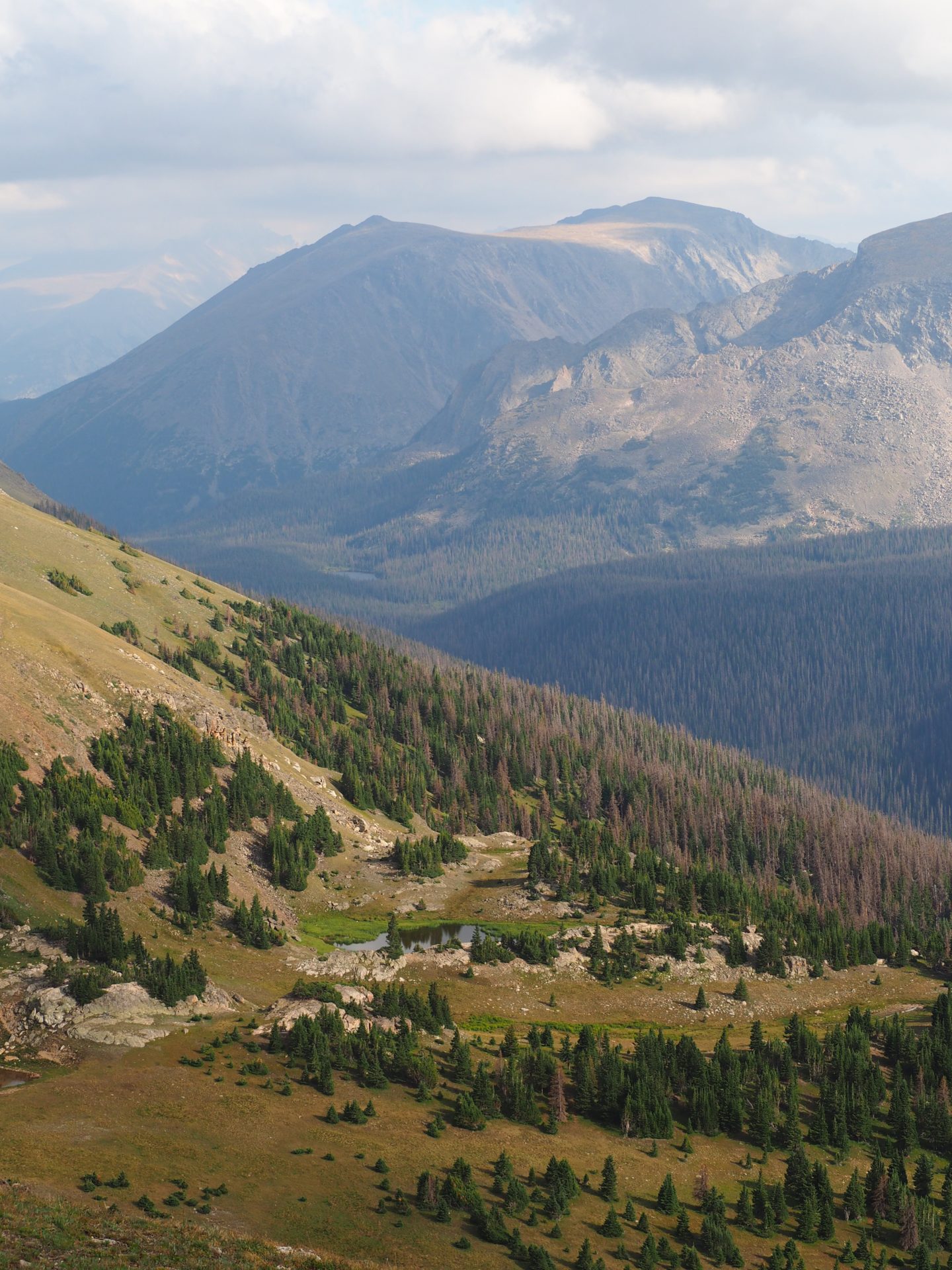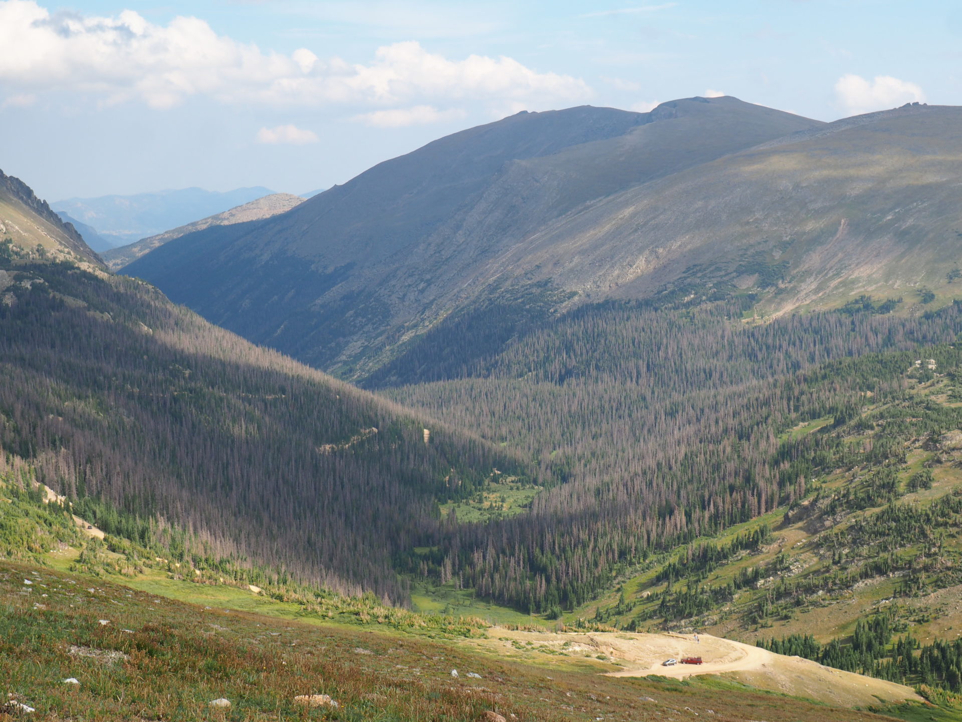 There are a couple of pullouts – of which many are high above the tree line – that give you a splendid panorama of the Rocky Mountain valleys. Interested in what you’d see? Here’s where to go!