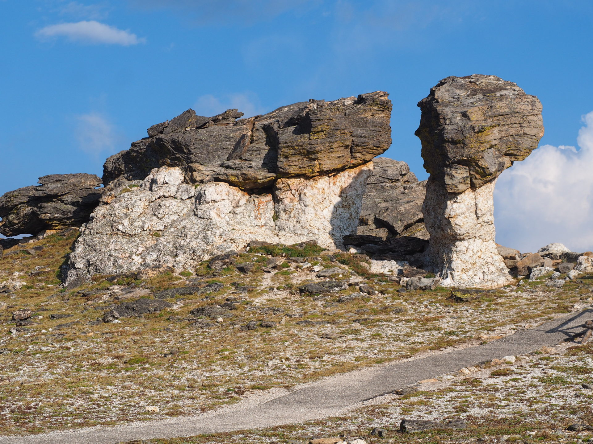 The marmots you’ll likely encounter quite close to the road. Try both sides. As for the trail – it’s a small way up and though that might take you’re breath away easily at this altitude, I would suggest to hike it. The views are really worth it. ↓