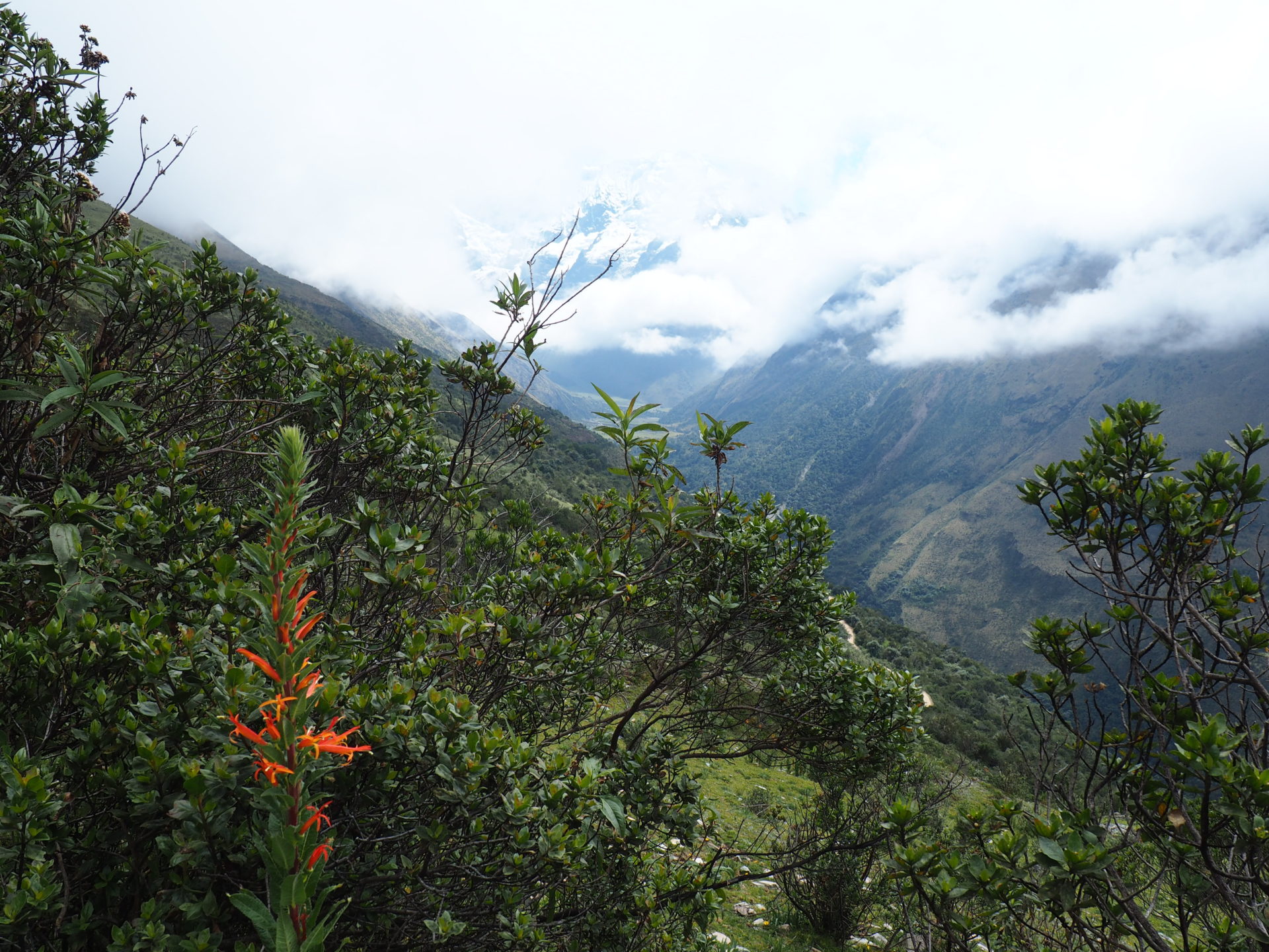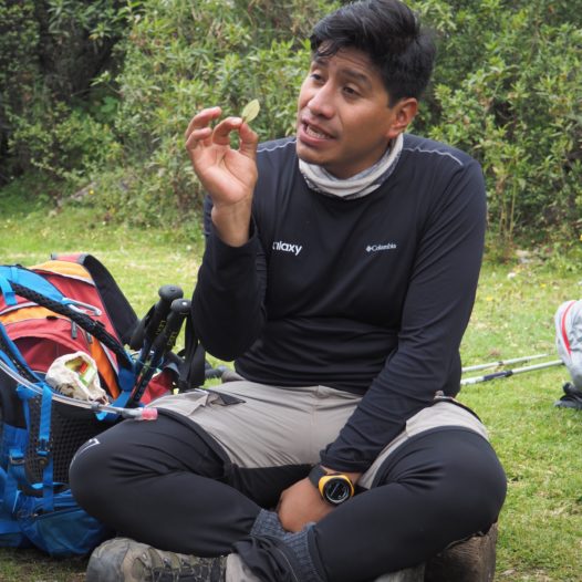At the top of the slope we were ready to hit the long and flat trail towards our first accommodation for tonight: the Sky Domes. But first Marco gave us a very neat explanation of the significance of both the Salkantay trail and the coca leaf for the Inca culture. Nomnomnom, we didn’t mind chewing those leafs either.