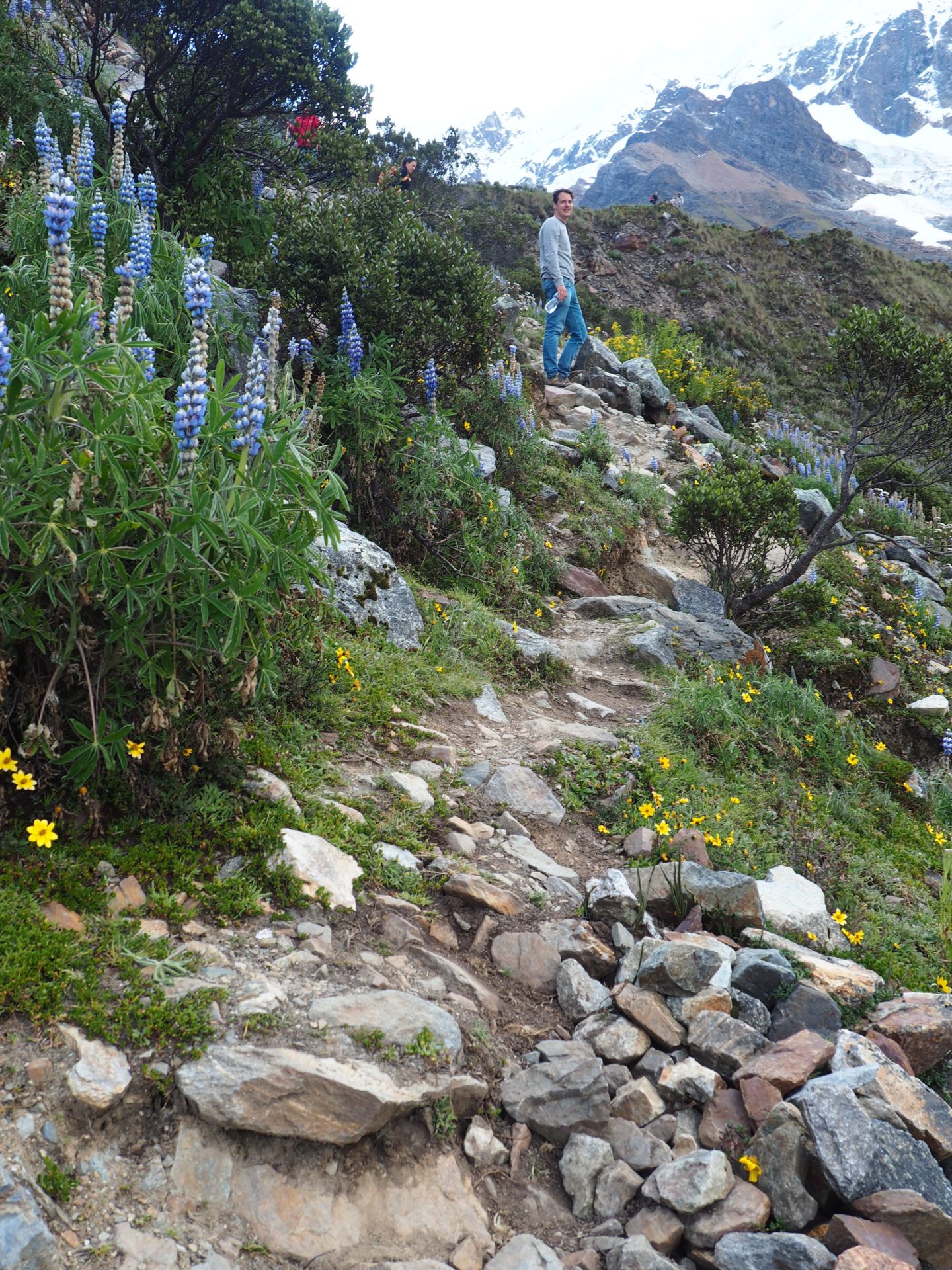 Thankfully we all made it through and the hike was so worth it. Deep, crystal clear waters with small waterfalls, wild flowers and the gorgeous peaks of the Willkapampa mountain range right were awaiting us.