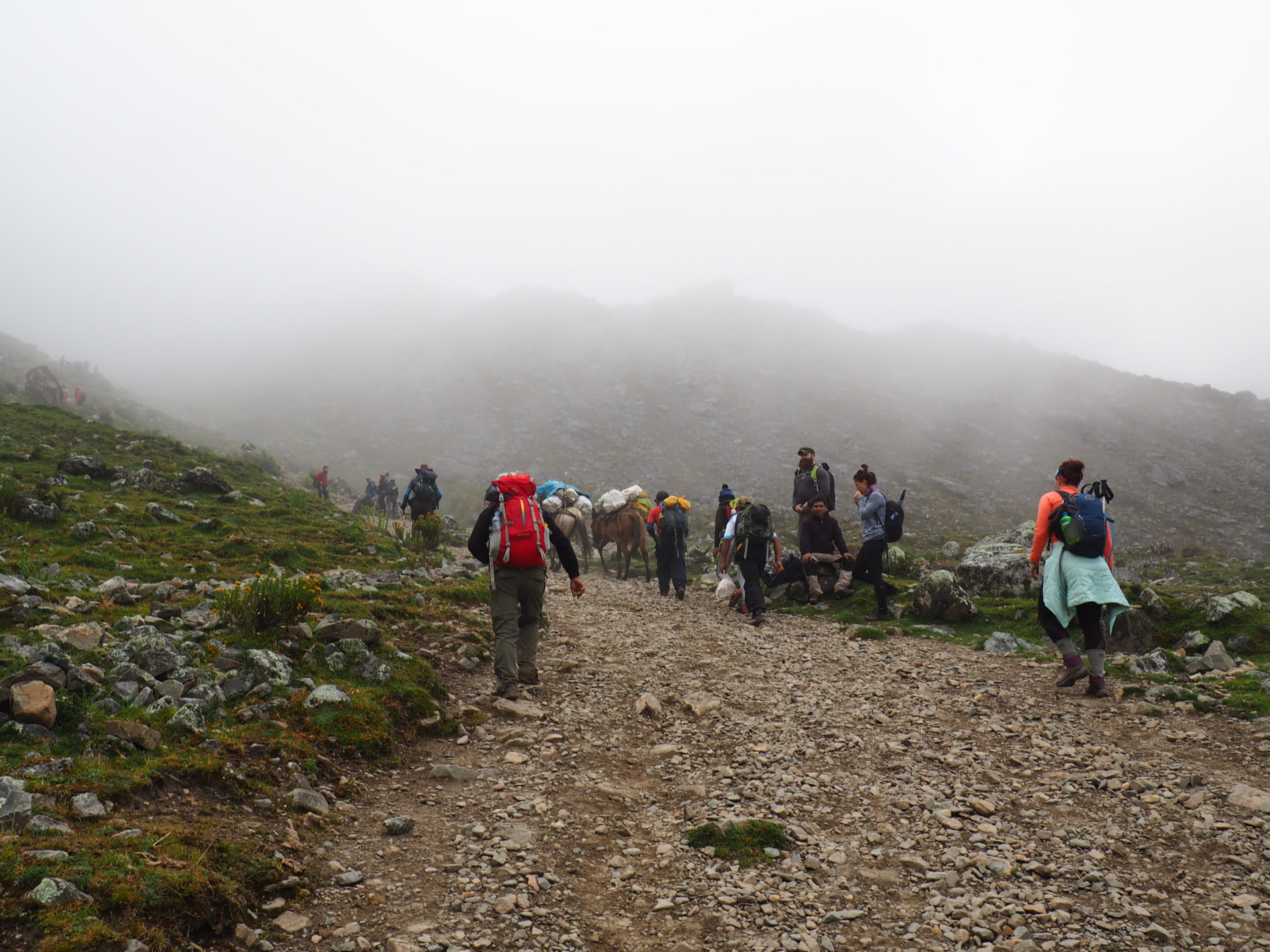 I personally had little difficulty with the altitude, but some of us were really suffering in here and breathing like a choo-choo train. Luckily Marco had brought some oxygen with him and the donkeys were never far away either, for those who really couldn’t walk any further.