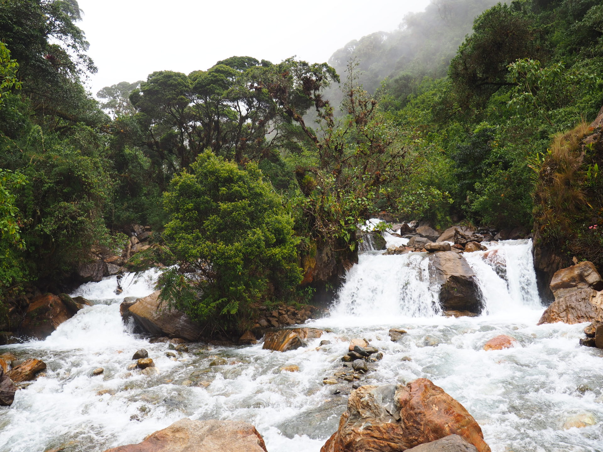 Lush forest, many rain showers in between (according to Marco just tiny Inca rain showers :)), waterfalls, tropical flowers and insects.