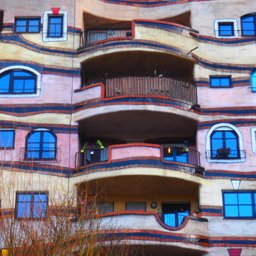 Right next to a huge supermarket and in the middle of a very grey residential area on the outskirts of Darmstadt is located a small, colourful fairytale that is beyond imagination. That may sound a little – let’s say – too much and highfalutin, but really, the Waldspirale of Hundertwasser is difficult to grasp. What a mind one must have to create such a building.